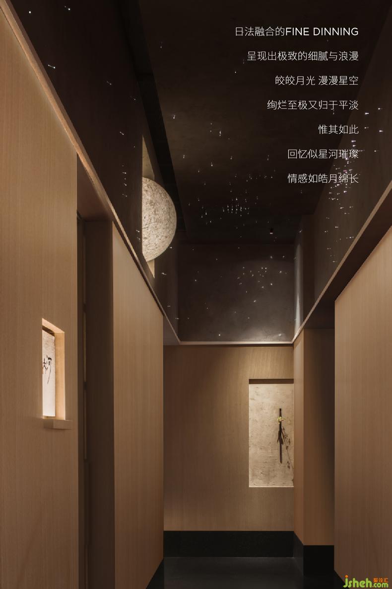 我喜歡時代給予FINE DINING的定義,餐廳設計讓所謂“極上的宴席”剔除了太多莊重的繁文縟節(jié),有了更多開放的態(tài)度。味道是恒久不變的主題,這其中蘊含的訊息與就餐的儀式同等重要,也是時代令儀式擁有了多種姿態(tài)。日系法餐很奇妙,濃墨重彩的法餐融合了日本料理的細膩柔和,值得用多一些時間醞釀情緒,迎接美味的升華。很榮幸能用塑造空間的形式創(chuàng)造人們的記憶與情感,讓日法融合的FINE DINING擁有更具象的表現形式?;貞浰菩呛予?,情感自細膩綿長。
