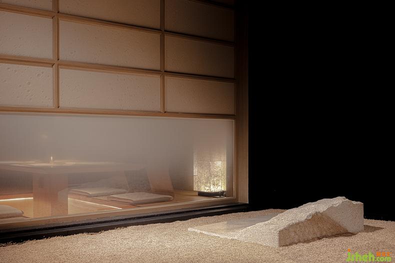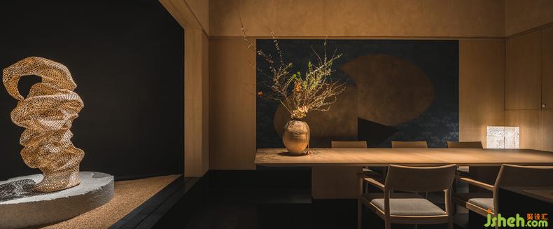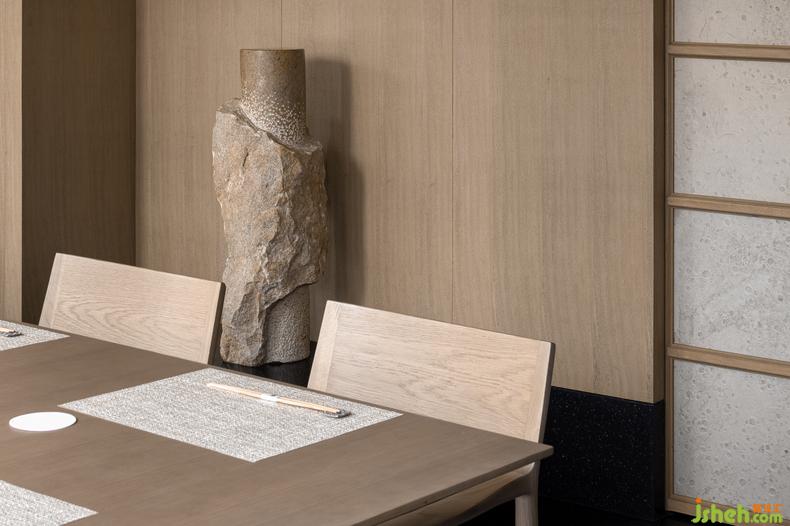 △《器》:研磨的石雕塑象征匠心精神。寓意著用心準(zhǔn)備的器具,力求為客人做出最好的料理。