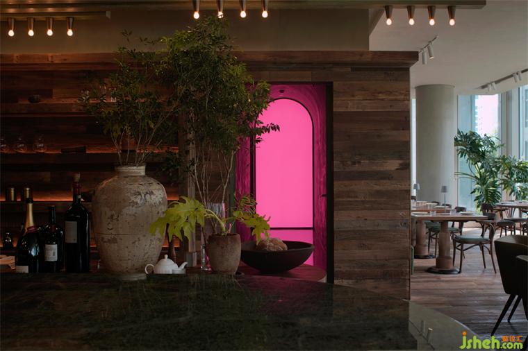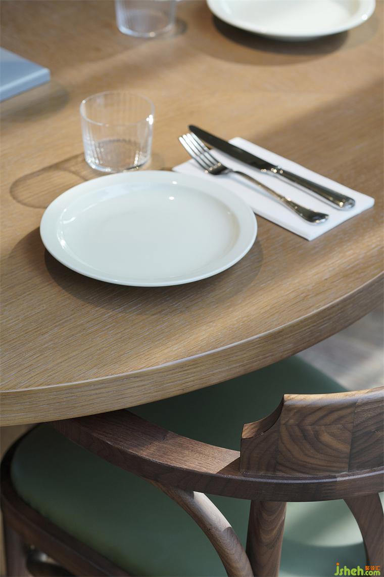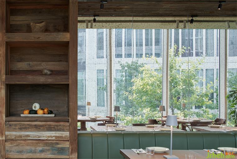 翡翠綠大理石紋理如甜點(diǎn)般質(zhì)感,搭配以綠色橡木紋理材質(zhì),餐廳設(shè)計(jì)整體以一種優(yōu)雅的姿態(tài),在餐廳入口的不遠(yuǎn)處,靜候客人的到來(lái)。