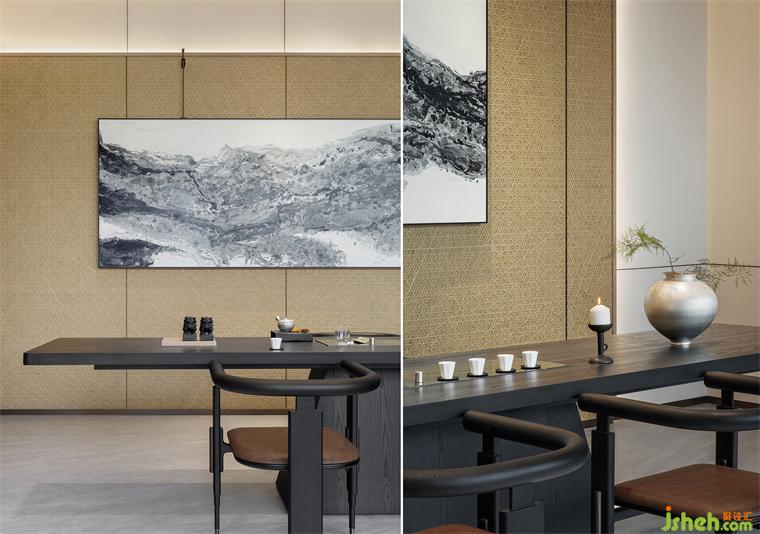 茶室空間延續(xù)著竹木與山石之色的主題,伴著墻上的抽象水墨畫,氤氳出一片茶煙靜氣,簡潔的現(xiàn)代家具則在東方風(fēng)韻之外更添禪思。健身空間也依中央庭院而立,明亮的光線讓運(yùn)動也別有一份樂活有機(jī)的氛圍。裝修設(shè)計最后的看房通道猶如一條藝術(shù)畫廊,關(guān)于青島記憶的老照片展列于此,鏈接起人與城市的記憶,從而譜寫出一曲藝文交織的琴島詩話。