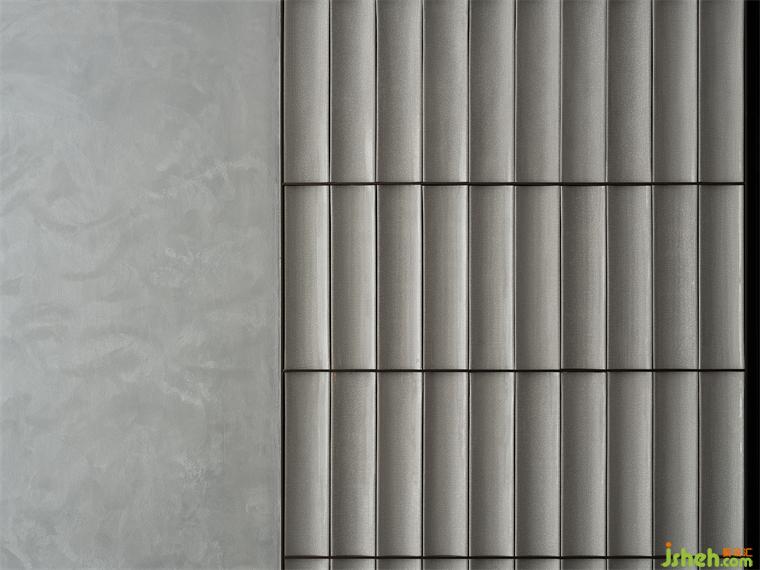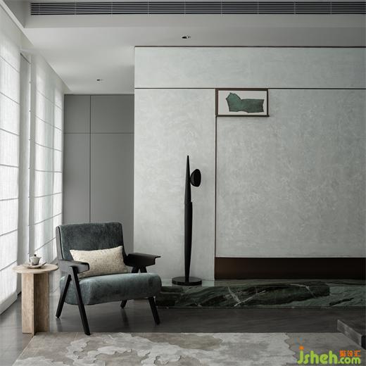 背景墻以白色石材搭配青綠,