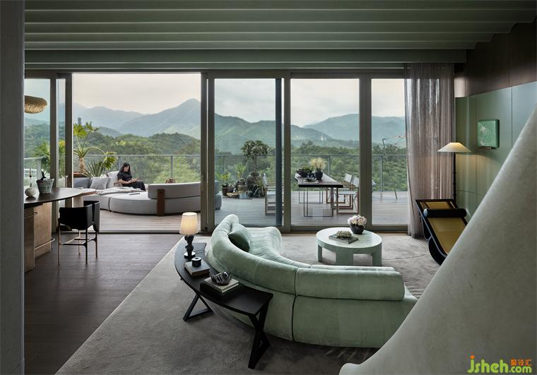 世界喧囂,山谷安寧。于山野竹林中拾級而上,裝修公司邁入山中一墅。后方是連綿山脈,前方則是寬闊山谷。弱化空間邊界,移景入室,綠城樣板房設計營造開闊的自然意境。居于室內(nèi),即可浸入山與水、林與竹的自然生態(tài)中,為山居度假營造一份詩意的底色。