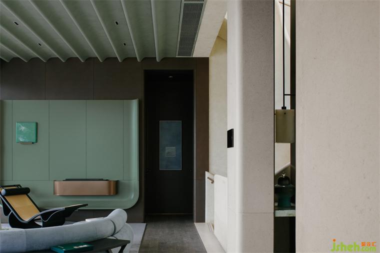 南陌高山碧,東方曉氣青。青,生命之色,東方之色。若翠山疊嶂,若層云涌現(xiàn),源遠(yuǎn)流長(zhǎng)之中蘊(yùn)含了東方獨(dú)特的傳統(tǒng)美學(xué)意蘊(yùn)。只此一色,其意無(wú)窮盡。西邊澗野,東邊廳堂。可望遠(yuǎn)山一抹青黛,心中怡然。東方泛白,之后為青,從清微淡遠(yuǎn)逐漸至光芒四射,這便是每日天空中的第一抹色彩。將青在室內(nèi)延展,綠城樣板房設(shè)計(jì)仿若締造一場(chǎng)東方美學(xué)與現(xiàn)代設(shè)計(jì)的碰撞。遠(yuǎn),可與群山呼應(yīng),營(yíng)造山居意遠(yuǎn)、放曠無(wú)涯的意境。