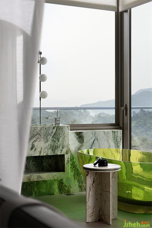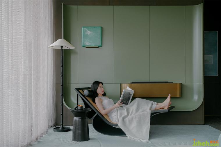 竹青大漆壁爐背景令生活的節(jié)奏沉靜下來(lái),臥于藤編躺椅,于清涼中小憩,或打開(kāi)落地?zé)糸e翻雜志,隨之進(jìn)入度假的心境。