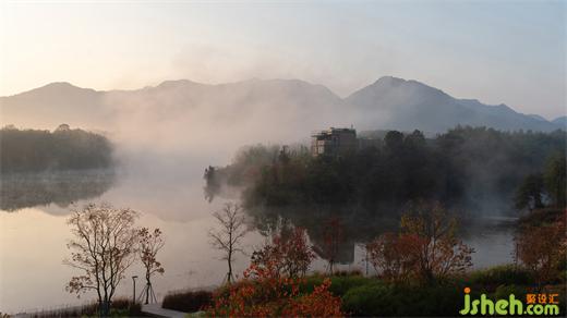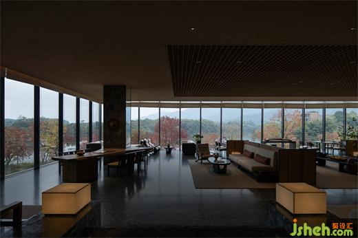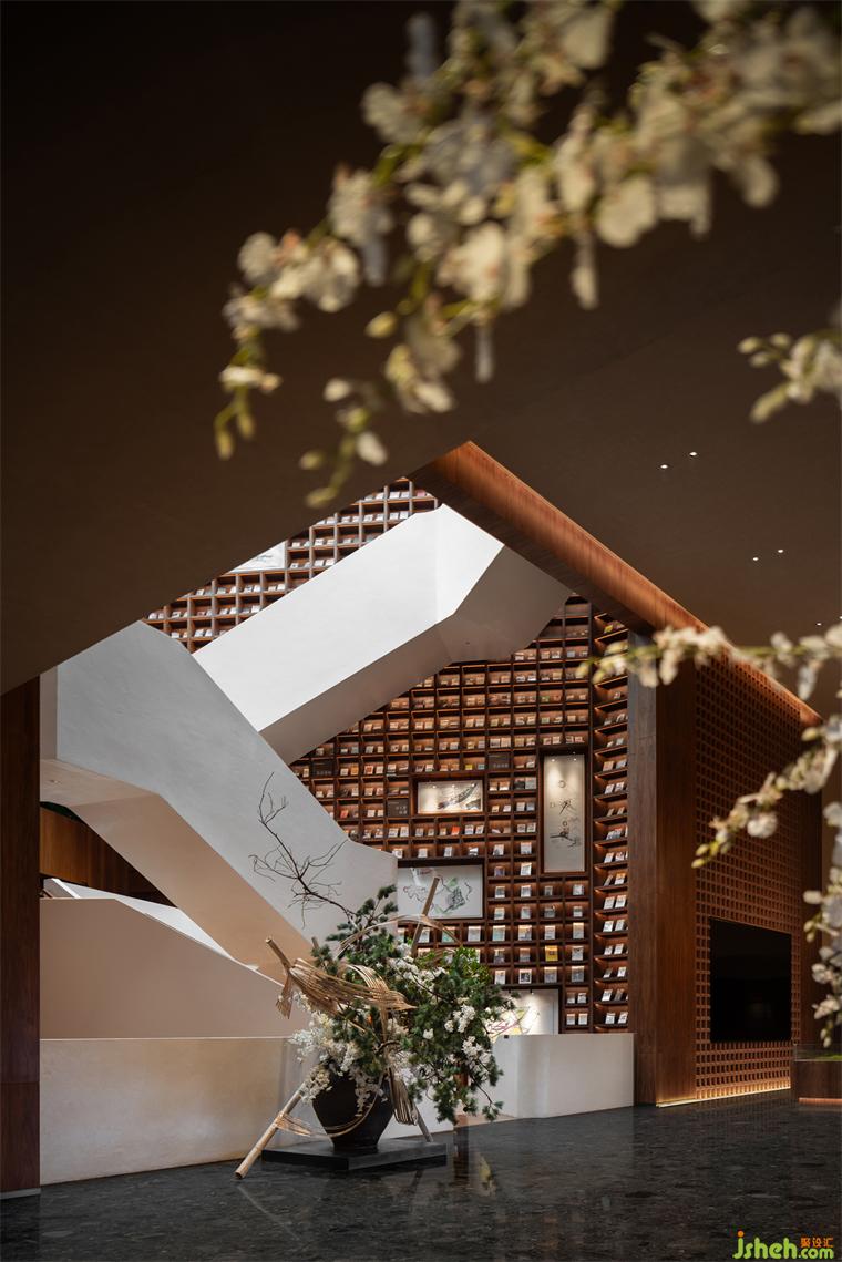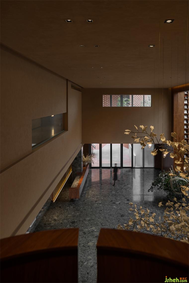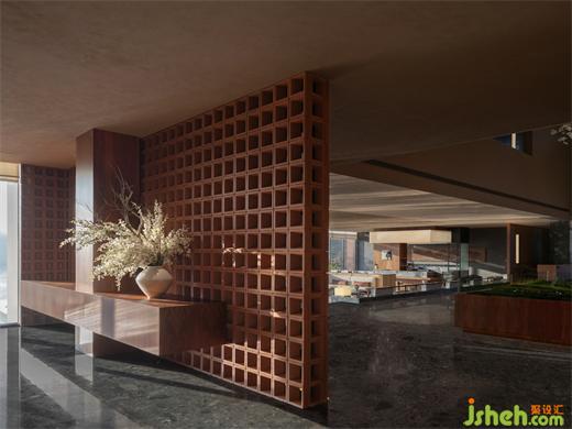 墻面采用當(dāng)?shù)靥沾u砌成,化繁為簡,返璞歸真。于空間內(nèi),藝術(shù)館設(shè)計(jì)巧妙利用光影塑造時(shí)間的動(dòng)態(tài),使空間結(jié)構(gòu)與自然對話、與時(shí)間呼應(yīng)。巨大的水面與外部湖光山色相接倒映,使得風(fēng)景無界,漫入內(nèi)部空間。裝修設(shè)計(jì)天井傾瀉而下的天光,鏤空墻體灑入的光影緩慢變化,游蹤所至的感官體驗(yàn),令每一個(gè)人在抵達(dá)時(shí)都會(huì)被這鄭重的儀式感觸動(dòng)內(nèi)心。
