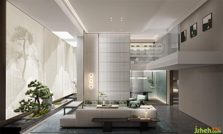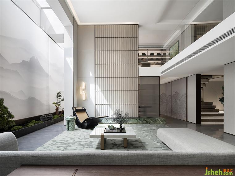 “矮紙斜行閑作草,晴窗細(xì)乳戲分茶”負(fù)一層空間將“明月、松柏、清泉”等意象融入細(xì)節(jié)之中,樣板房設(shè)計(jì)營造 “明月松間照,清泉石上流”的清雅意蘊(yùn)。