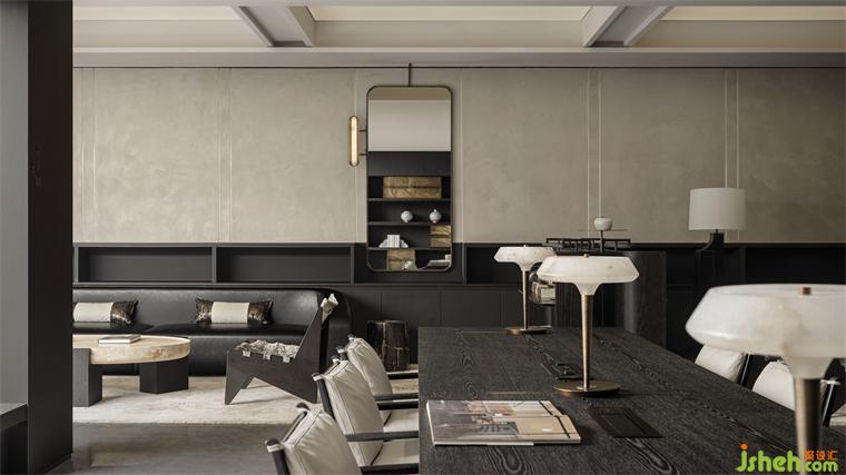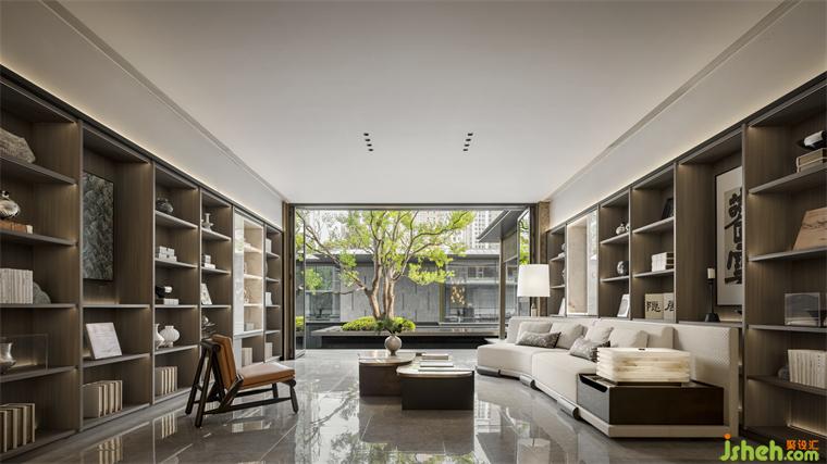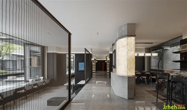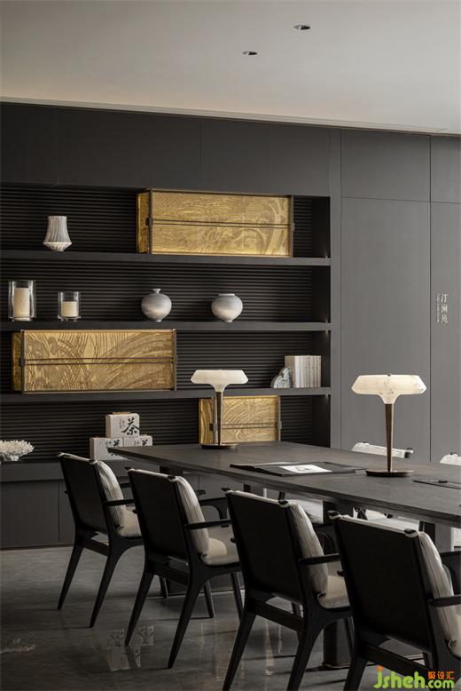 城市會(huì)客廳涵蓋會(huì)客觀景、共享餐吧、書(shū)吧等,各空間仿佛悠浮湖上的島嶼,移步異景,妙趣橫生。會(huì)所設(shè)計(jì)以“曲折盡致,深遠(yuǎn)不盡”之意趣,巧于因借,精在體宜,使自然的變化、時(shí)間的流淌與空間呼應(yīng)共鳴,營(yíng)造一方超然物外的雅致空間。
