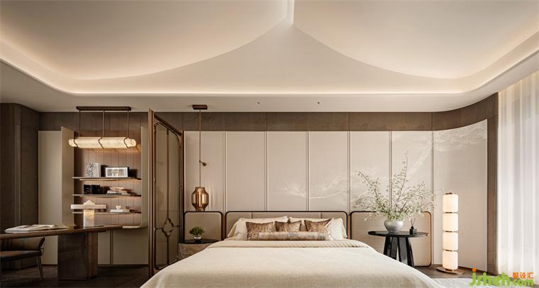 在清逸、雅致的空間基調(diào)中,引自然景致入室,營造出閑逸的東方意蘊。酣眠其間,仿若赴一場松風(fēng)雅集,聽萬壑松濤,聞秋雨瀝瀝,喚起一派心曠神怡的詩意體驗。