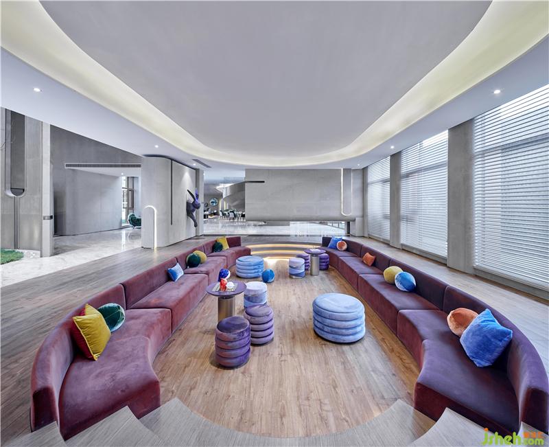 深度洽談區(qū)通過下沉式弧形區(qū)域分隔設(shè)計(jì),打造圍合與開放、私密與共享并存的平衡。墻面上的藝術(shù)畫”夢(mèng)境彩虹“像是神秘的圖形符號(hào),沖擊著視覺感官,深邃的引人一探究竟。突然一只兔子跳出來,來到愛麗絲的仙境!
