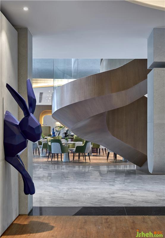 兔子先生帶我們穿過一面玻璃鏡,鏡中你看到了自己卻又不是真實(shí)的自己,鏡中有田野和森林。漫步在洽談區(qū),活力的木色,清新的綠色,空間仿佛一個(gè)柔軟的夢(mèng)境,朦朧光影下成生機(jī)勃勃的森森綠林。它如同一個(gè)埋在心里的秘密,不可言說,神秘而又微妙,靜靜地等待你去開啟。