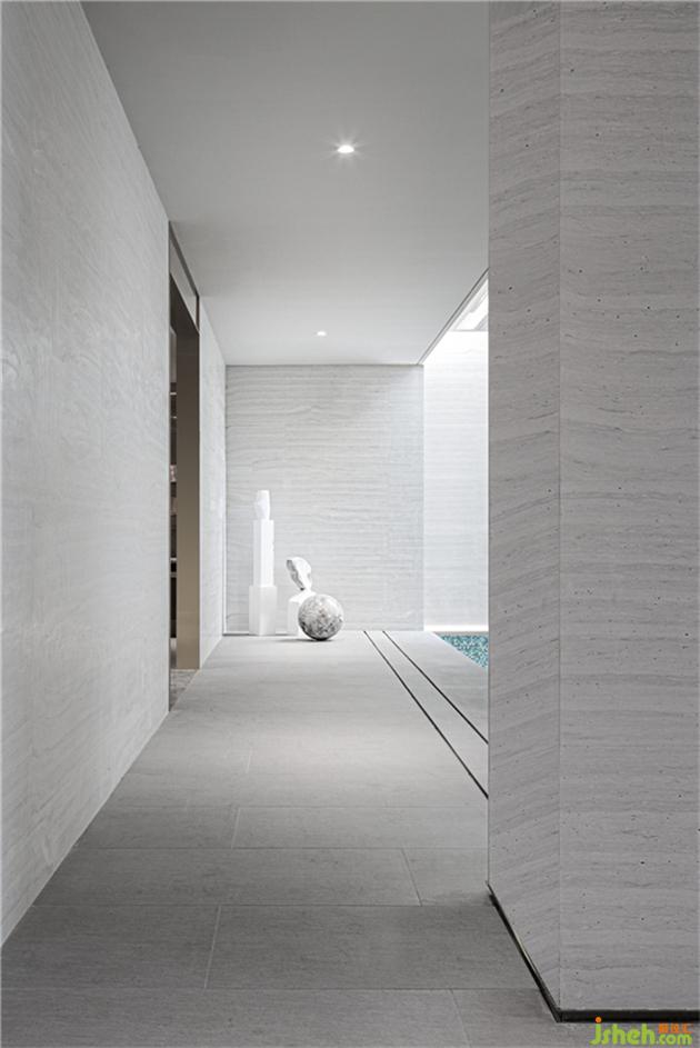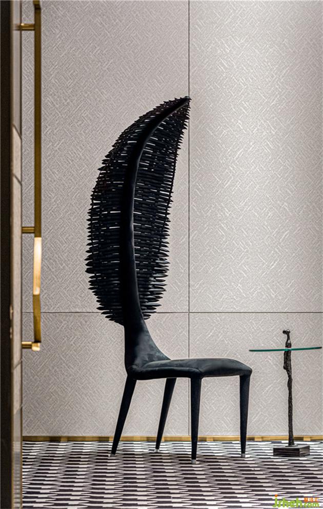 裝飾墻采用有著高雅品味的翡翠綠大理石,和燈具輕盈金屬的組合下內(nèi)斂綻放。