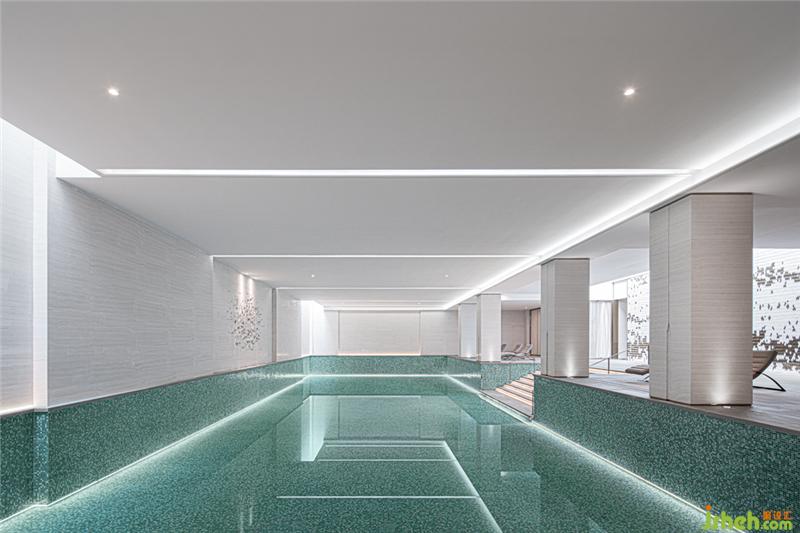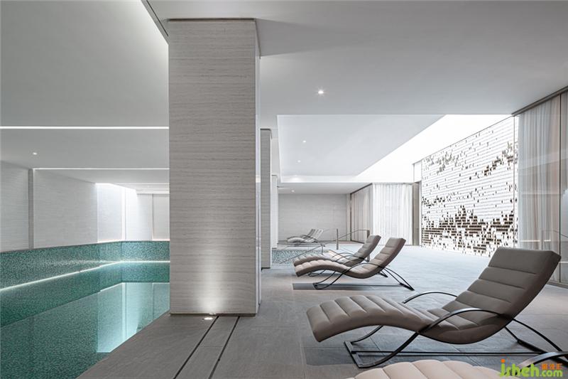 泳池區(qū)與vip室之間的玻璃隔斷不僅契合了空間寶盒的主題,同時讓VIP室與外界相連 ,與泳池產(chǎn)生了互動,悠悠水波與光影增強了空間深邃氛圍,營造一種尊貴不凡的藝術(shù)體驗。