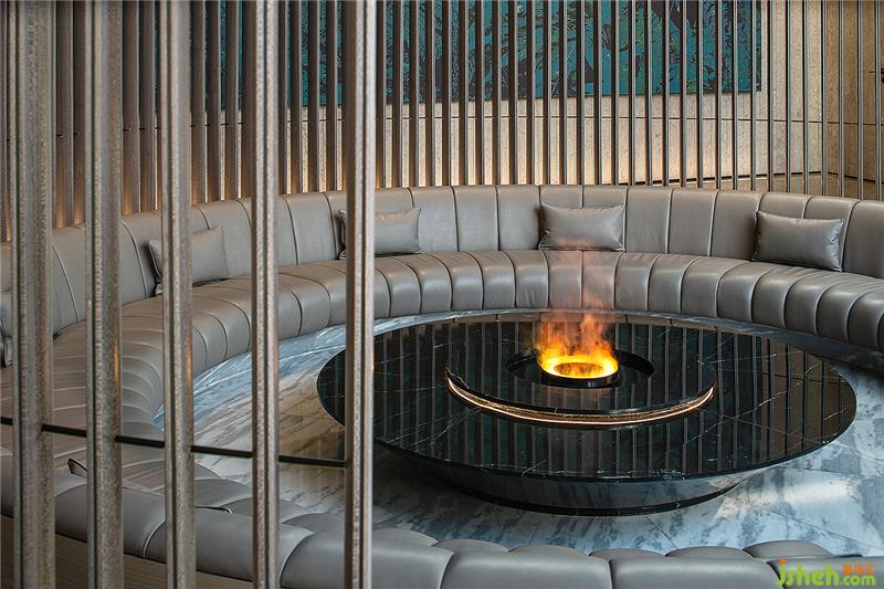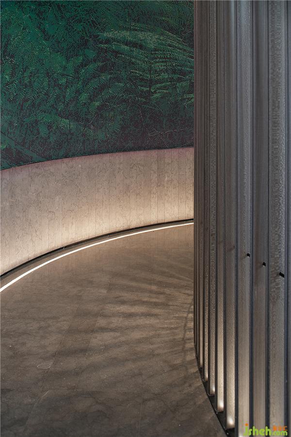 直線條的造型燈具,為圓弧的壁面和陳設(shè)帶來不一樣的視覺延伸,金屬質(zhì)感表現(xiàn)異材質(zhì)的特殊紋理。會所設(shè)計