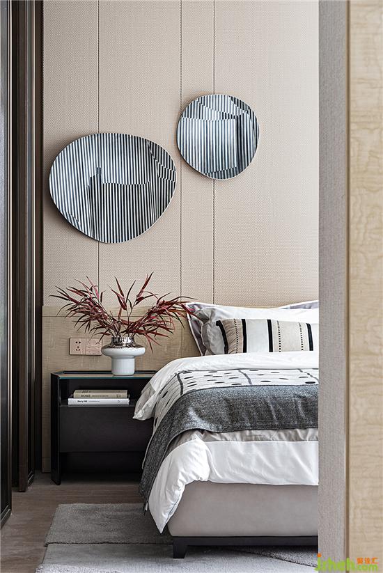 主臥房應該是個舒適的休息場所 ,它必須要是一個可放松的空間,讓每天被忙碌生活追著跑的都市人得以喘息,沉淀,從而獲得再出發(fā)的能量。樣板房設計