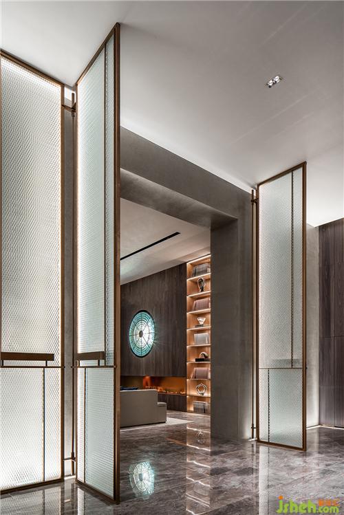 圓形玻璃壁燈的浮雕肌理、高柜上的藝術(shù)擺件……WJID使不同質(zhì)感相互點(diǎn)綴,打造出古樸與現(xiàn)代的結(jié)合。圓形壁燈柔和了原本規(guī)整的縱向線條,為洽談區(qū)增添了一絲婉轉(zhuǎn)。綠色玻璃及古銅金屬作為點(diǎn)綴,使空間層次更加富有意蘊(yùn)。裝修設(shè)計(jì)