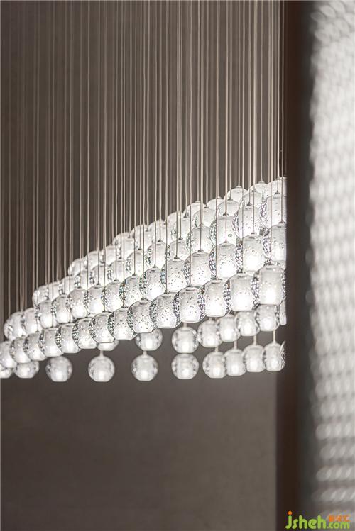 連綿成片的透明吊燈,在室內(nèi)撒下一片星星點(diǎn)點(diǎn),銀波微漾,美輪美奐。滿足功能需要的同時,也為空間籠罩上一層夢幻情致,模糊了現(xiàn)實(shí)與幻想的界限。