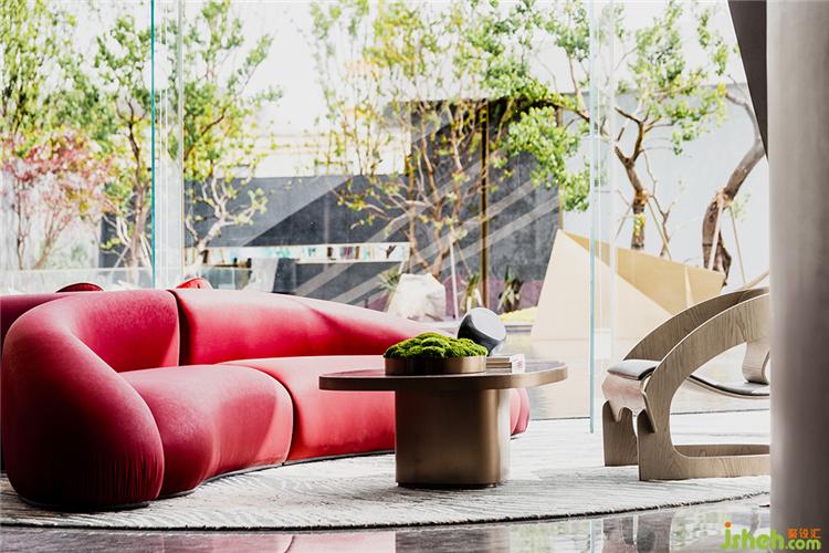深洽區(qū)的家具設(shè)計著重體現(xiàn)生命的愉悅與歡欣,線條圓潤,色彩柔美,配以植物裝點,整體如一首有形的抒情詩。好的空間,是要既有藝術(shù)的格局,亦不減生活的氣息。
