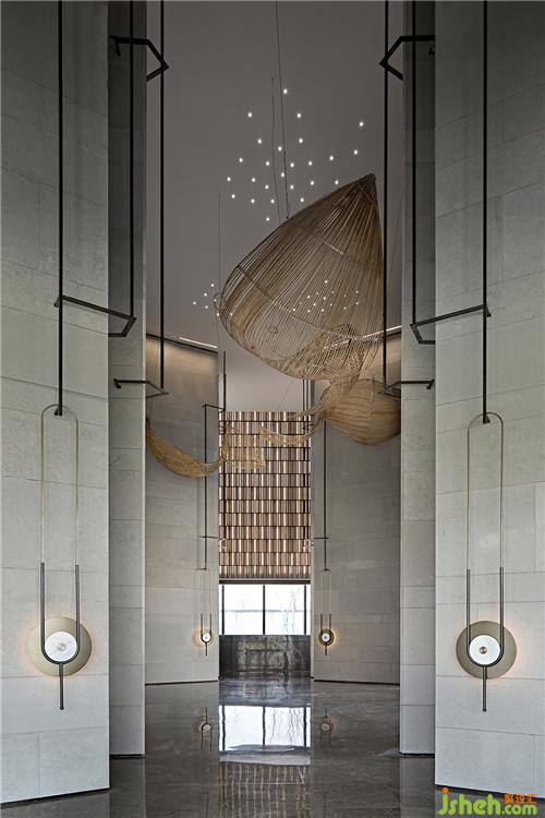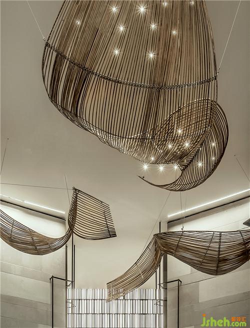 如星點(diǎn)的燈光,售樓處設(shè)計(jì)夾雜于裝置之間,與其互應(yīng)互生,浮動(dòng)的線條與光影縱橫交織,是詩意,是啟示,是向往。