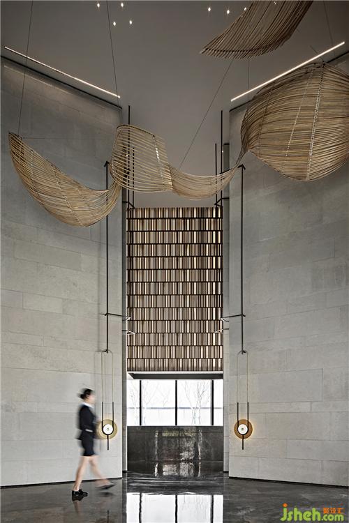 新旅·明樾臺(tái)坐落于南昌九龍湖,得益于“坐湖抱江,水脈交匯”的城市生態(tài),WJID以“水韻浮動(dòng)”為設(shè)計(jì)意象,結(jié)合鯤鵬等神話元素,意圖打造具有東方詩意與美學(xué)態(tài)度的售樓處設(shè)計(jì)空間。