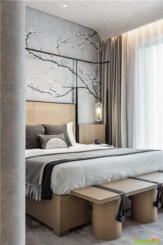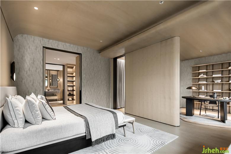 臥室多純色,少裝飾,用宗白華先生的話說,是“初發(fā)芙蓉”之美。忙碌一天,回到不受打擾的休息空間,需得用寬敞、寧靜、誠實(shí)的內(nèi)心面對(duì)自己。