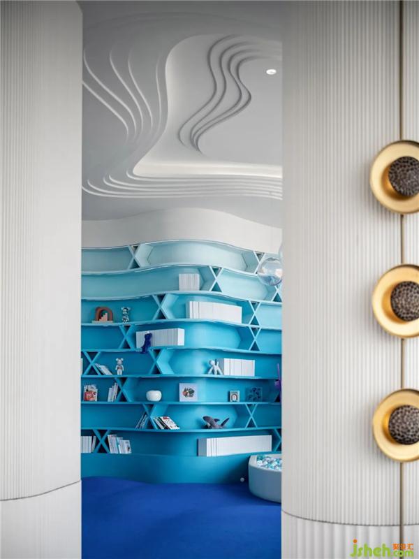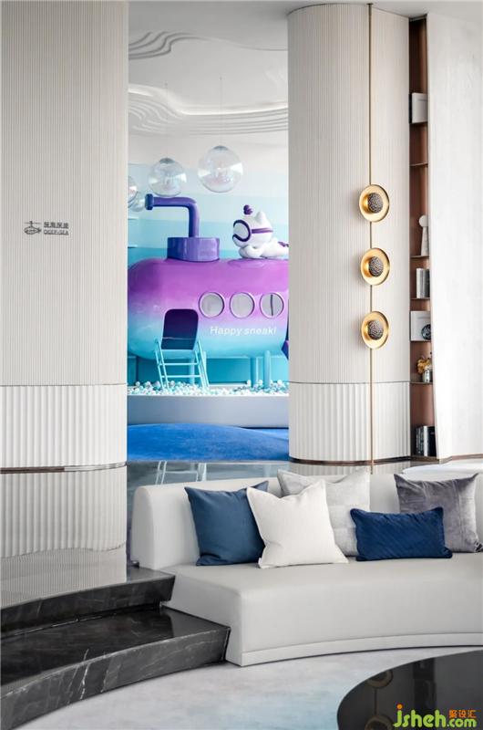設(shè)計師在三層兒童娛樂區(qū)以深入淺出的漸變色進(jìn)行巧妙分割,在流動的光影中,帶來意趣的無邊想象。