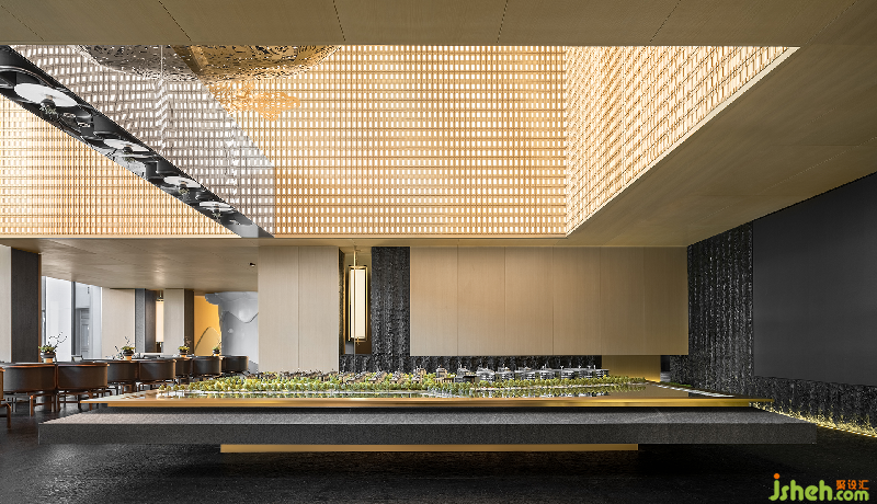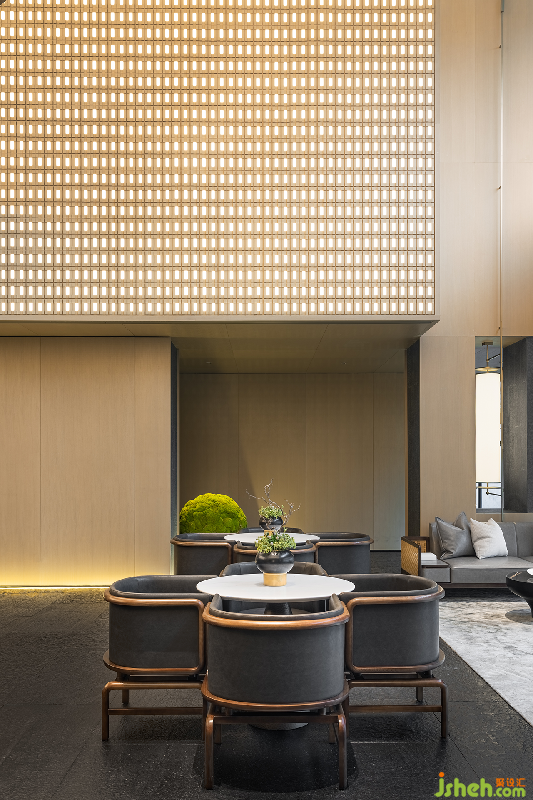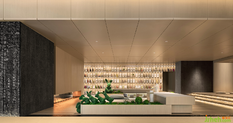 前廳以巧妙的分割剝離出一個(gè)線條與層次分明的包容性空間。石面粗糙質(zhì)地帶來的是與自然的原始風(fēng)味深刻銜接之感,綠植元素融入其中體現(xiàn)為東方設(shè)計(jì)特有的禪意。
