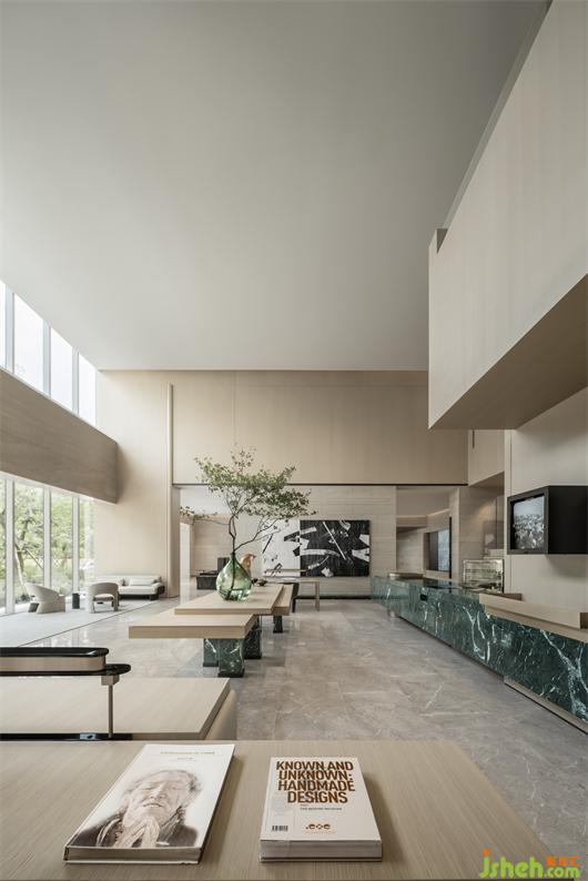 營(yíng)銷中心設(shè)計(jì)復(fù)古的綠色遍布整個(gè)空間,既代表了海派的生活特點(diǎn),又能形成一種與自然為伴的印象。空間是那么的安靜,沒(méi)有喧賓奪主,在互動(dòng)中有自己的詩(shī)意。