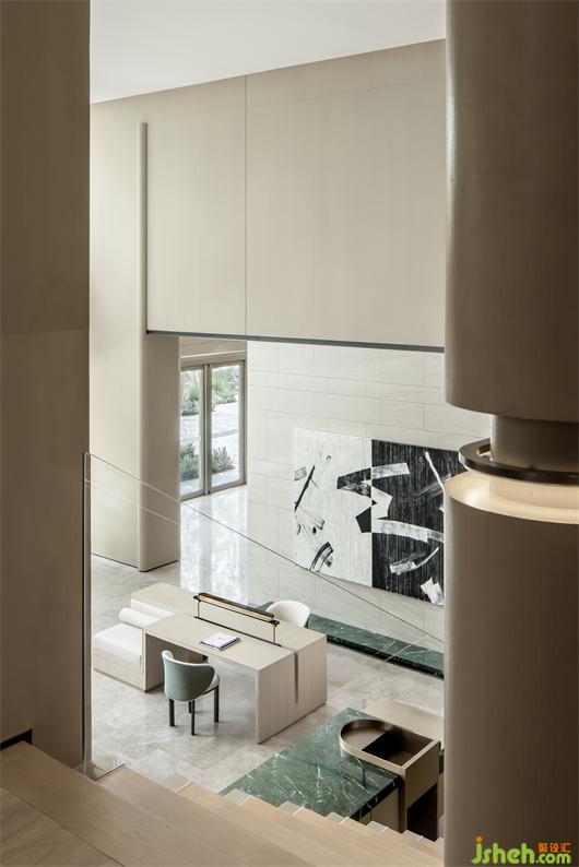 在空間的銜接中,設(shè)計師注重視覺的豐富度與層次性。錯落的線條彼此交織,與積木狀體塊層層疊疊拼湊。巧妙的交織,自由的分割,通透的光影,立體空間由多維平面進(jìn)行組裝,極富戲劇感與探索性。