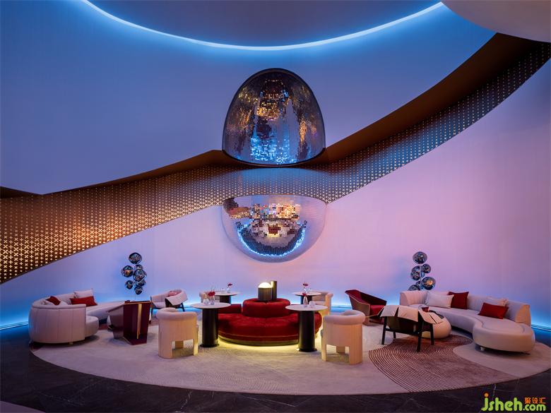 在爵士酒吧氛圍的營造中,設(shè)計師搭配燈光,賦予空間曲線鮮活、靈動的情境。
