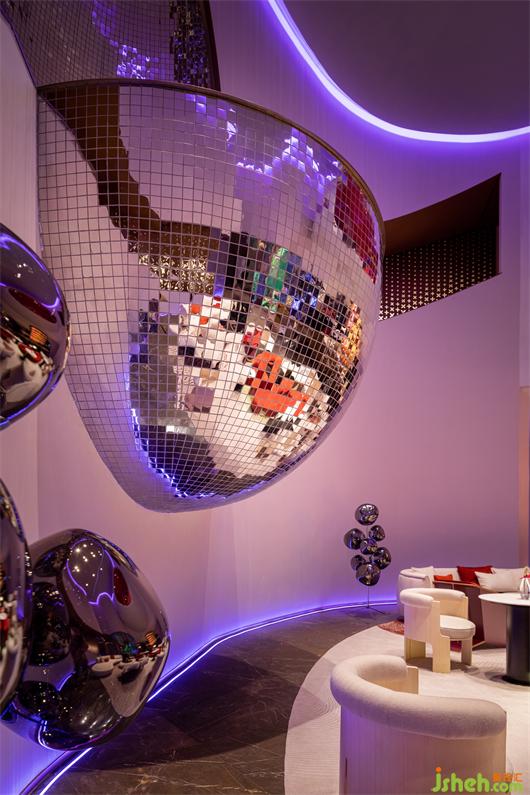 極富形式感的家具,是空間的獨特坐標(biāo)。擁有金屬質(zhì)感的光帶是空間基底,閃著熠熠星光,仿佛在無形中宣告著,這就是一處明星場所。