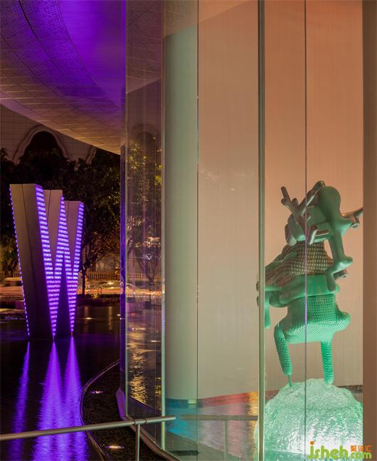 夜幕降臨,標(biāo)志性字幕閃耀,在夜色與空間之間蕩起瀲滟。多變的色彩混合交織,在黑夜的神秘背景下,空間形成一抹都市霓虹。