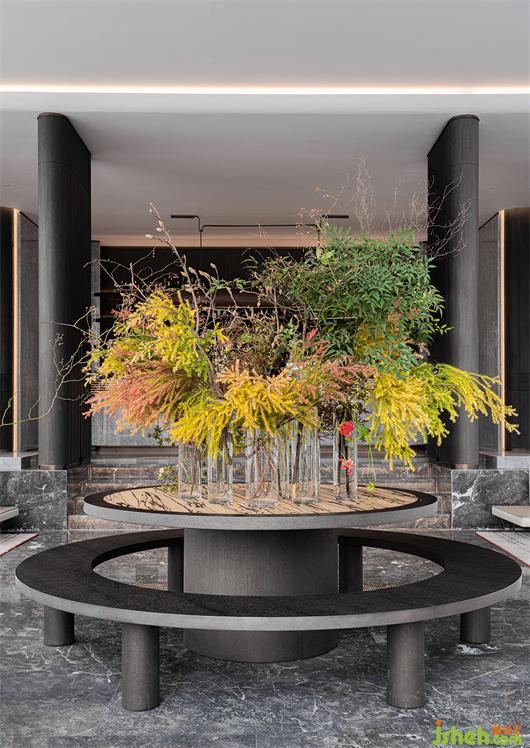 空間不僅承載人類秩序也詮釋自然的風(fēng)景,綠植組合引入郁郁蔥蔥的森林遐想,予人徜徉自然深處,游走于藝術(shù)邊界的體驗感。