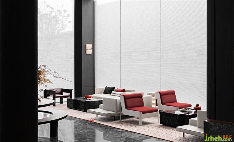疏影橫斜,藝術(shù)化與戲劇性疊加,烘托出一個層次分明的會客區(qū)域。