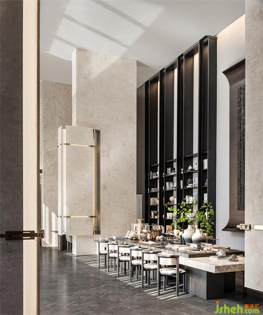 藝術(shù)裝置將江心嶼的形象化作“孤嶼”的縮影投射在設(shè)計(jì)中。跳躍的活力造就出生氣,設(shè)計(jì)延續(xù)自然形態(tài)線條的精髓,與空間形成一場(chǎng)靜默的對(duì)話。