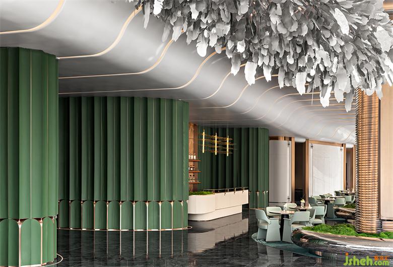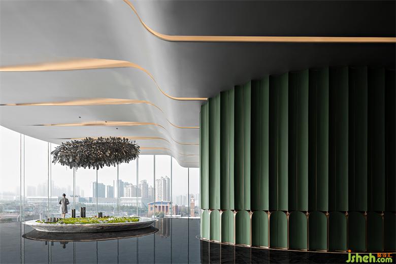鏡面將日光反射,折射出無(wú)數(shù)的棱鏡形式,武漢售樓處設(shè)計(jì)在一片又一片綠色光磚上映出郁郁蔥蔥的森林。
