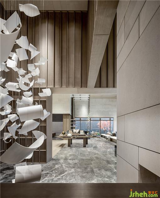 銷售中心設(shè)計(jì)裝置如書卷紛紛,亦如時(shí)光剝落,于木色交錯(cuò)相映,婆娑之間,藝術(shù)細(xì)節(jié)與書閣氣質(zhì)初現(xiàn)。