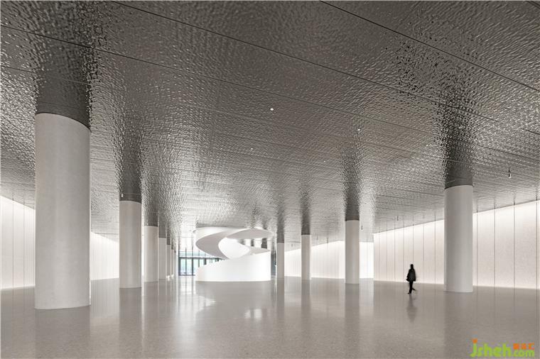 首層室內(nèi)吊頂采用了整體式的漫反射系統(tǒng),公共藝術(shù)中心設(shè)計(jì)將自然光線通過反射引入室內(nèi),形成自然與室內(nèi)光環(huán)境的循序過渡。