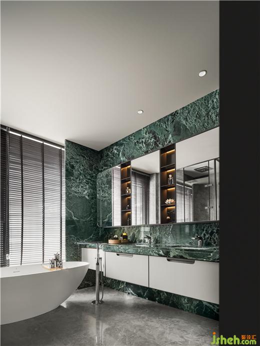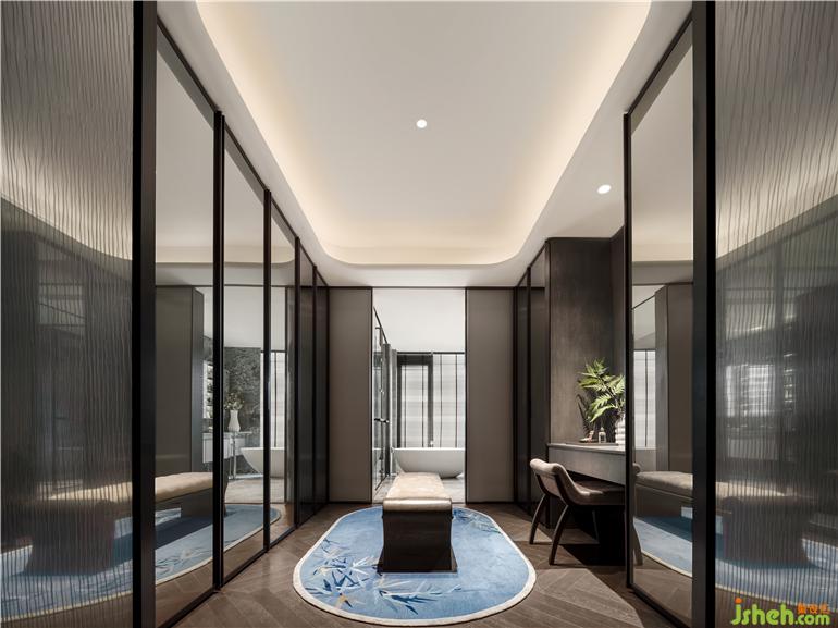 獨立的衣帽間、化妝臺,卸下鉛塵繁雜,轉(zhuǎn)頭可見圓融如“不系舟”的浴缸,百葉窗保護隱私又不影響欣賞美景,杭州縵云樣板房設(shè)計讓溫?zé)岬姆曳及约?,享受全身心地放松,愛自己是要終身修習(xí)的浪漫。