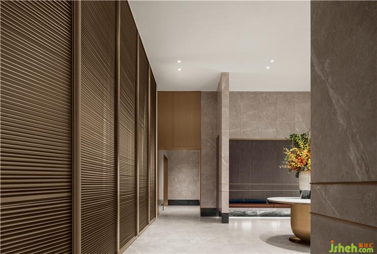 杭州縵云樣板房設(shè)計首層大堂是歸家的接駁站,城市與社區(qū)的聯(lián)系,工作到生活的過渡,奔波與家的情感轉(zhuǎn)換。
