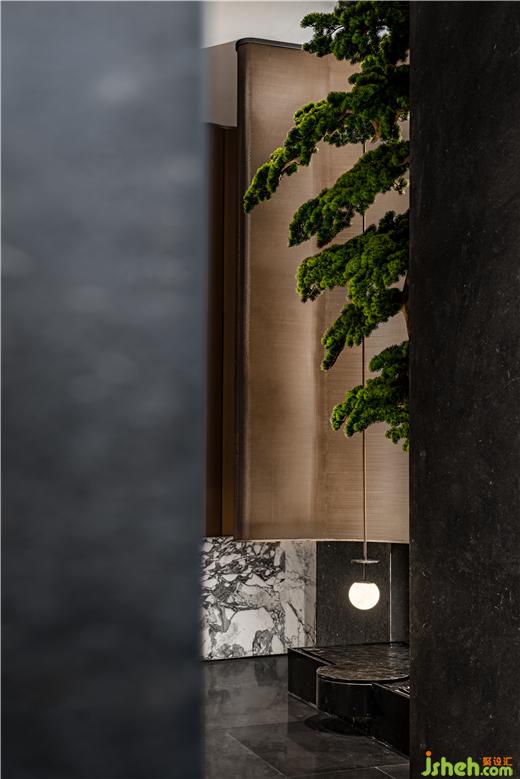 WJID取高奢酒店寶格麗為意象,成都龍湖瑰云里營銷中心設(shè)計將其大膽?yīng)毺?,尊貴而雅奢的文化精髓通過設(shè)計手法與空間融合,脫離傳統(tǒng)售樓空間的語境,打造一個生活藝術(shù)與度假氛圍交織的尊貴體驗(yàn)空間。
