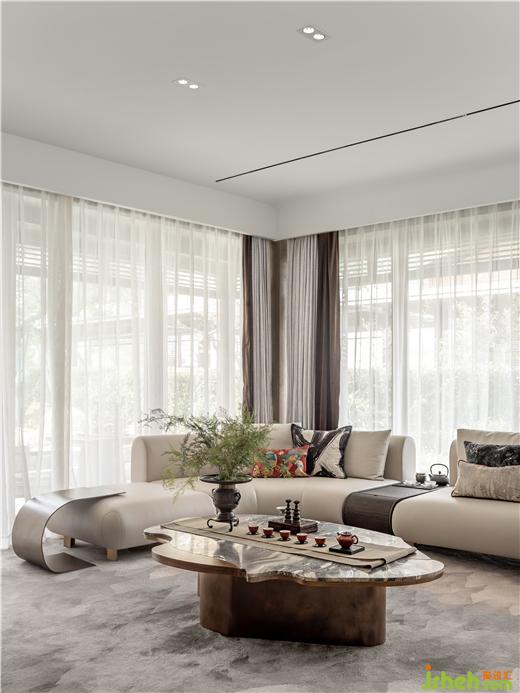 暖色溫潤的燈源是人體需要的視覺溫感,冷色的大理石桌吸引視覺落腳,心靈做到放松愜意,而身體又兼顧了清爽與通達(dá)感。