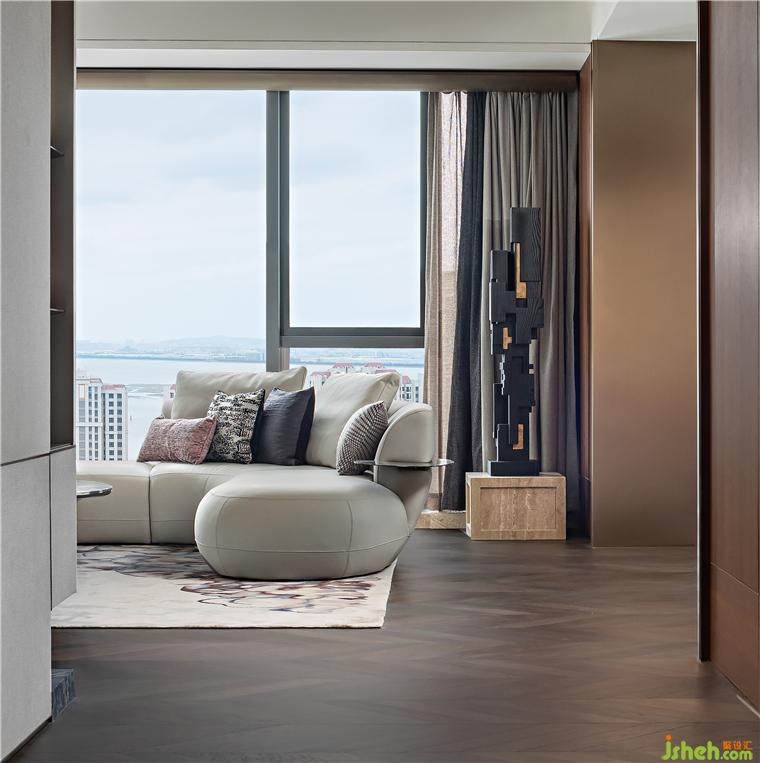 憑欄極目海闊處,氣勢曠達天涯遠。休閑洽談區(qū)作為近海樓臺的盛景之首,泉州萬科城灣壹號營銷中心設(shè)計將“引海景入戶”的設(shè)計理念發(fā)揮得淋漓盡致。