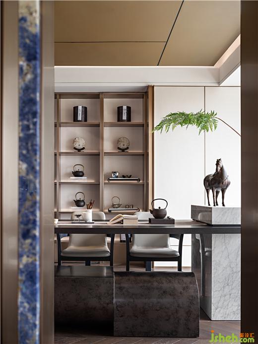 石材與幾何線條的質(zhì),與海納百川的容,對話,融合,衍生出中和之美的意象和生命力。向內(nèi),極致的精度和雅意,激活了空間的高格屬性;向外,可引入天地大美,胸襟無限的氣度全開。
