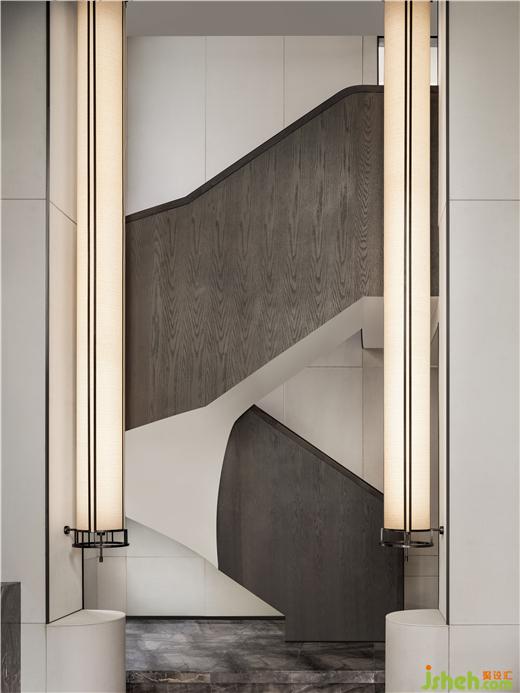 蜿蜒樓梯自下而上延伸,旋轉如水紋波瀾,以文人之雅,禮迎主正。
