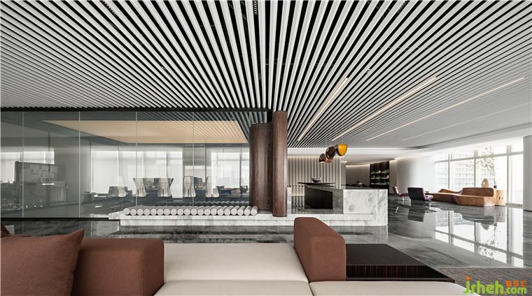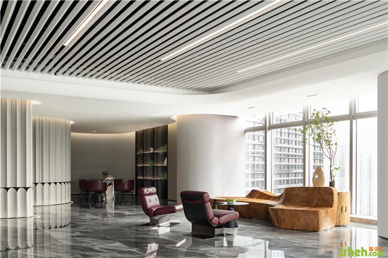 優(yōu)雅柔長,藏于細(xì)部,秩序與沉穩(wěn)的聯(lián)結(jié)是都市精英氣質(zhì)的體現(xiàn),流暢開放的空間曲調(diào)在其中溫柔延展,??谵k公室設(shè)計(jì)大體量的墻體曲線形態(tài)彼此串聯(lián),營造出優(yōu)雅、時(shí)尚的空間氛圍。