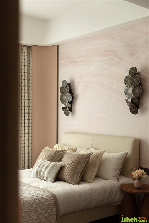 主臥運(yùn)用云石,云紋等元素打造云朵般純凈雅致的空間。歸閑舍,看云起,云隱于心。臥室是人們心靈休憩的地方,希望打造具有歸屬感的空間,歸去來兮,吾歸何處?云起,當(dāng)此去。