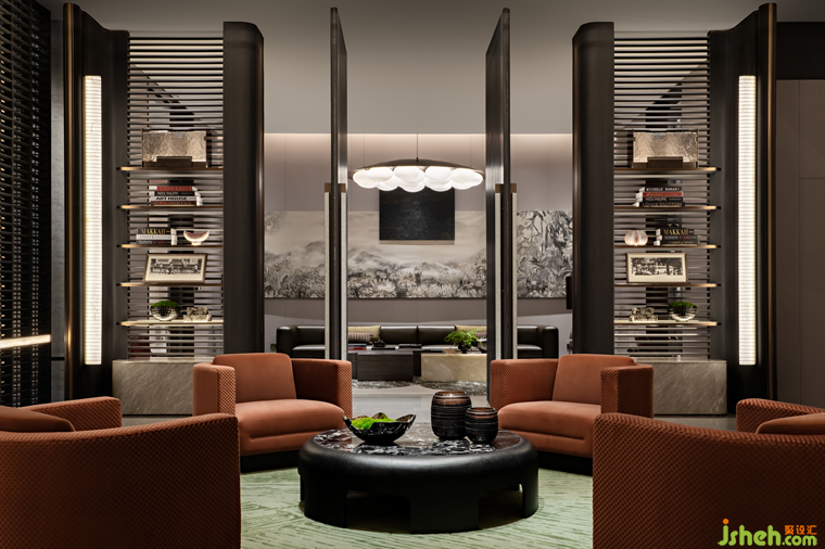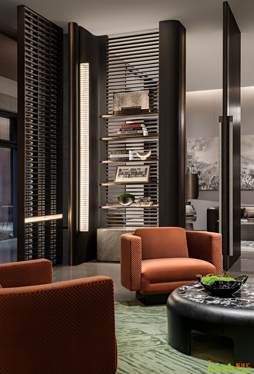 流光瑩澈,溢彩盛綻。會(huì)所水吧區(qū)以優(yōu)雅的紅色、深邃的黑色為主色調(diào),演繹卓然風(fēng)姿。營銷中心設(shè)計(jì)云石壁燈映照出悅目光暈,綻放雋永新趣。