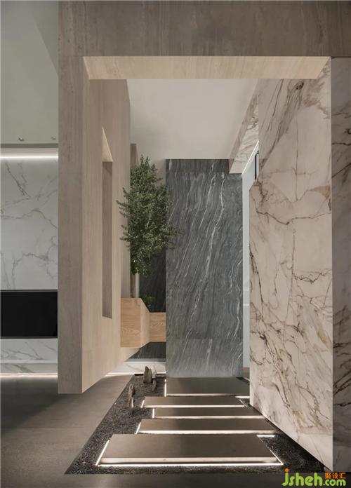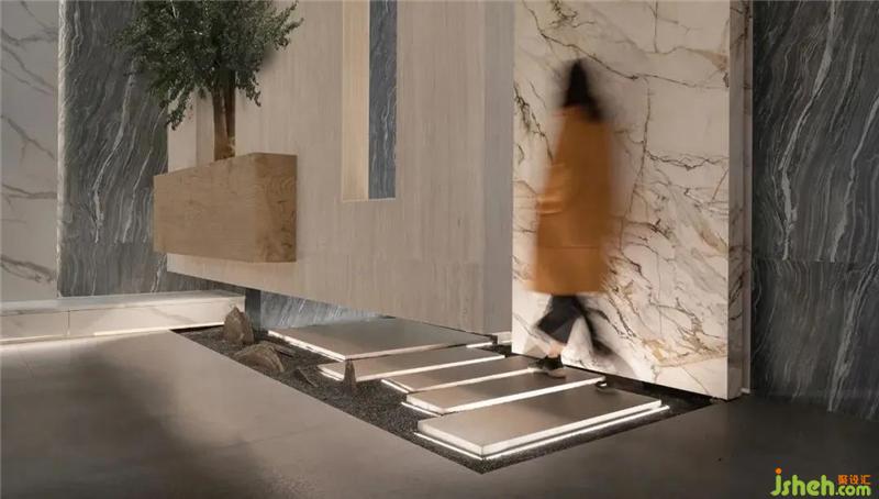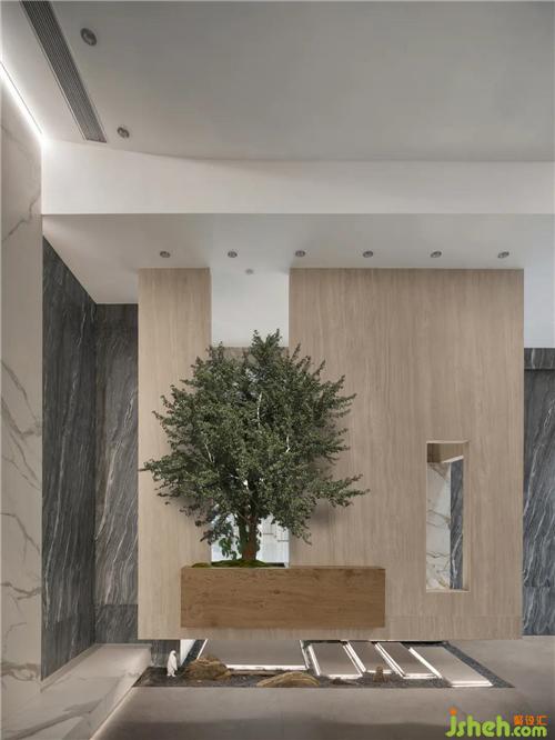 有時候也會離家遠行,遇見了許多美好,想全部帶回你私享的這片天地?!扒訋r”就好像大地的肌理,展廳裝修設計你把心里的那棵樹種在了一進門就能看到的地方。