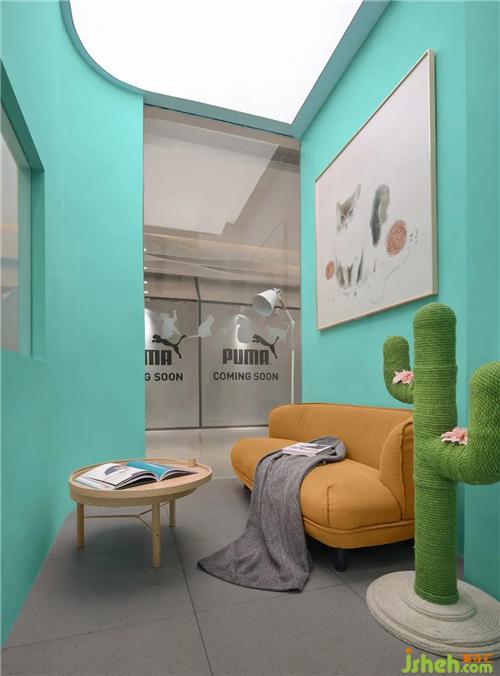 會客室提供了一隅之地,均勻的燈光灑下,店鋪裝修設計是擼貓的最佳地理位置。