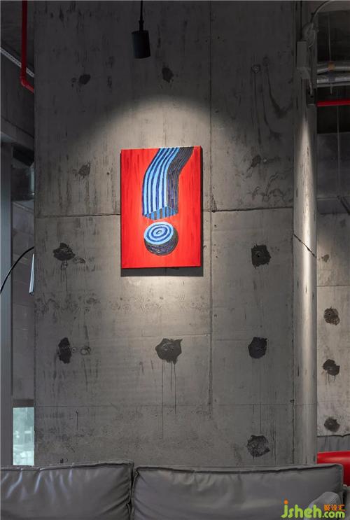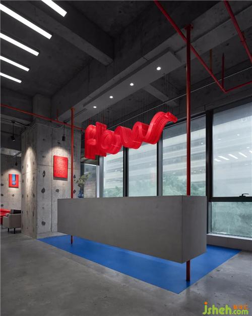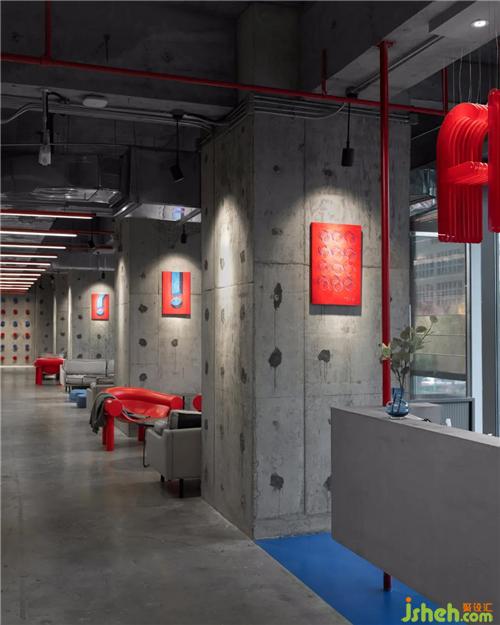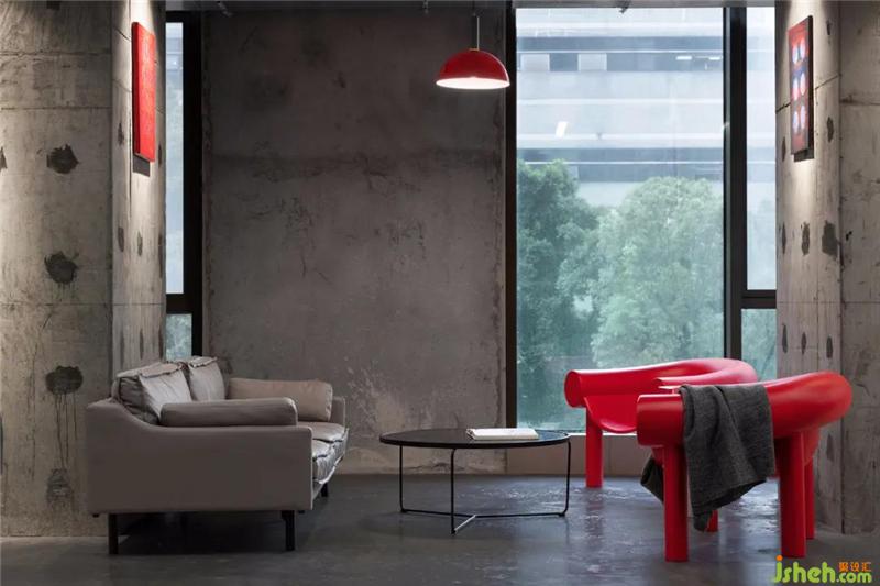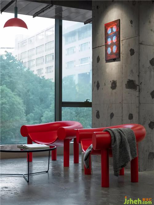 本案比鄰各大高校及產(chǎn)學(xué)研基地,設(shè)計(jì)任務(wù)書便以“文創(chuàng)聯(lián)辦”的定位展開。我們欣喜地發(fā)現(xiàn),現(xiàn)場原有的灰色毛胚水泥和紅色消防管道,辦公室設(shè)計(jì)本身就存在強(qiáng)烈的藝術(shù)色彩及構(gòu)成感,所以由此探討出一種“無一物中無盡藏”的設(shè)計(jì)方向,無需包覆過多的裝飾,以最原始質(zhì)感的、不刻意的、自由自在的藝術(shù)形式來呈現(xiàn)。
